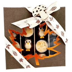 Mezcla de pralinés de otoño en caja de regalo marrón oscuro