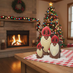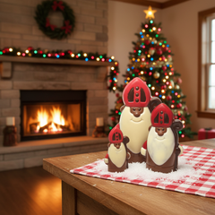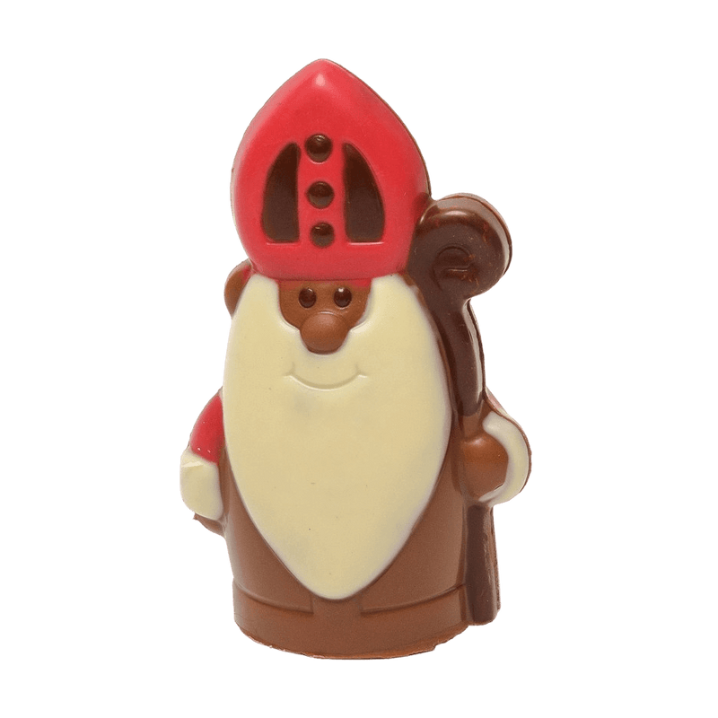 Deléitese con nuestro San Nicolás de chocolate con leche de 50 g, elaborado artesanalmente en Bélgica con cacao fino y espíritu festivo, el pequeño regalo perfecto para endulzar las fiestas.