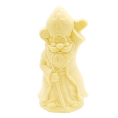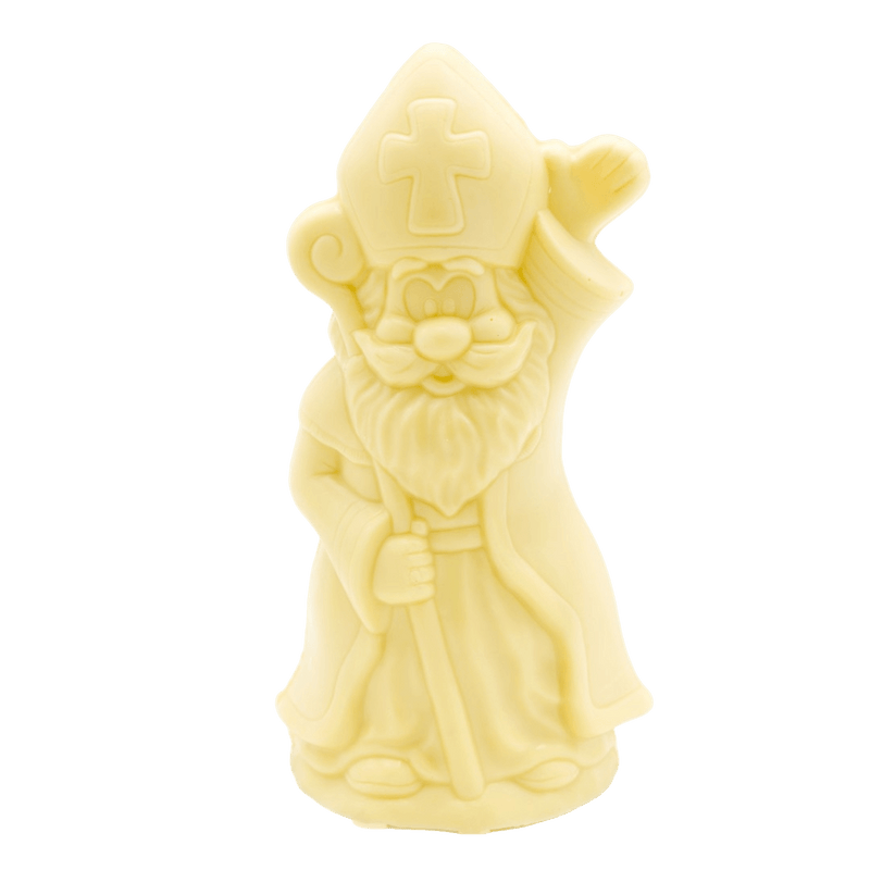 Celebre la temporada con San Nicolás con cetro 250 g de chocolate blanco, hecho a mano en Bruselas de manteca de cacao cremoso para una indulgencia suave y festivo.